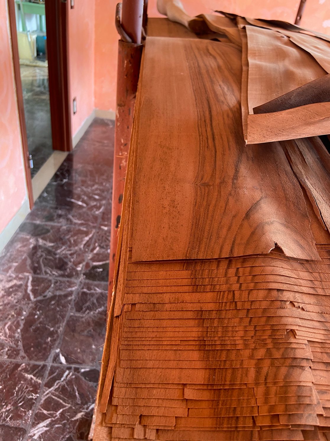 Le sculture lignee realizzate tra il 2004 e il 2018, insieme alle installazioni site-specific, potrebbero raccontare a più livelli la storia di tre vite, quella dell’artista, quella dei larici trentini da cui le opere nascono e quella degli oggetti utilizzati nelle fasi del lavoro oppure recuperati dalla vita di qualcun altro. L’opera segnala ciò che resta di queste storie e le rende immagini presenti nella materia profonda da cui esse provengono. Il larice richiama il dato biografico e la scelta abitativa di un luogo radicale – nell’accezione botanica del termine, relativo ad una radice profonda ed essenziale che Manfrini fa propria; l’impiallacciatura conserva l’essenza del legno e ne evoca le possibili metamorfosi. Ancora, l’intento evocativo è particolarmente forte negli oggetti che l’artista priva dell’originaria funzione, riducendoli a oggetti estetici che attivano un rapporto esclusivamente visivo. Estetici quanto ironici, gli oggetti di Manfrini hanno tutti avuto una funzione pratica e una vita precedente, che a volte sembrano persino rivendicare.