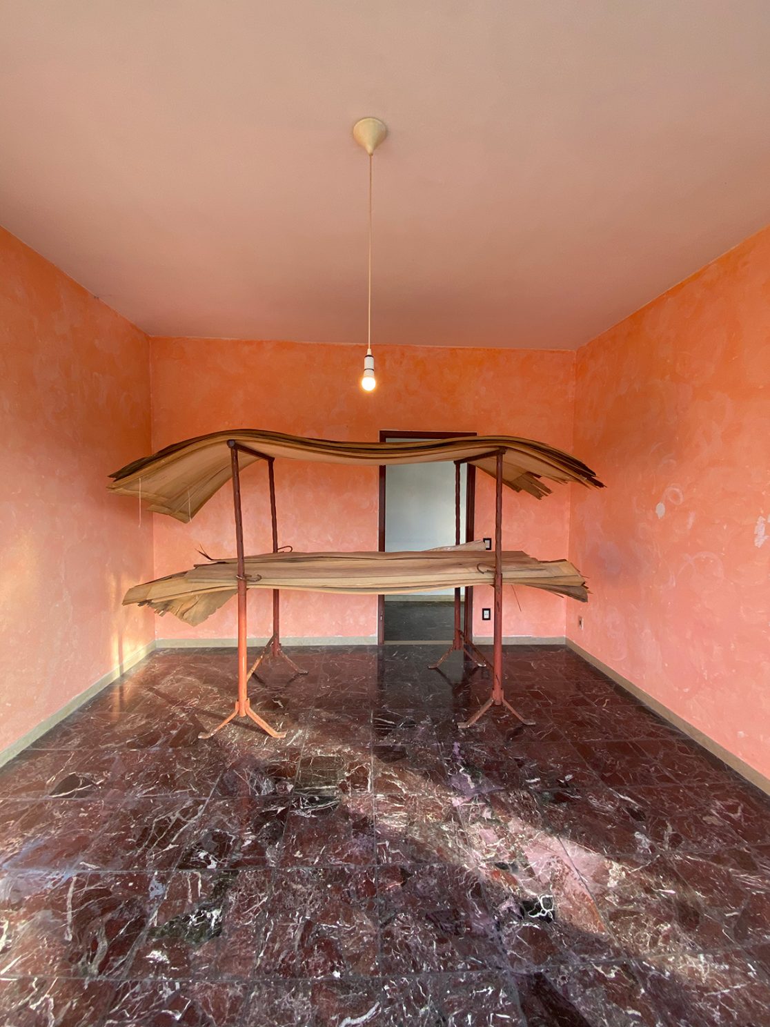 La serie rappresenta il capitolo di una ricerca sull’immanenza in uno spazio in cui i fenomeni accadono e le cose, semplicemente, stanno. La scultura quindi diventa il mezzo con cui riformulare le modalità dell’abitare e con cui indagare il campo dei rapporti uomo-natura, oggetto-spazio, tecnica-scultura al di là di ogni polarità, e anzi osservando il continuo sconfinare e migrare di questi elementi gli uni negli altri.